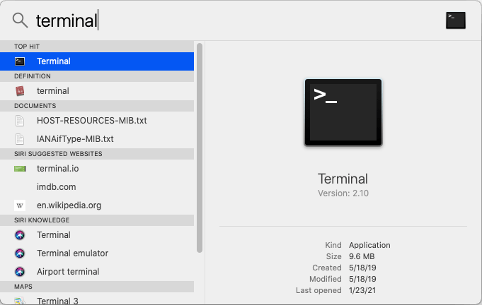 On a Mac, in the Finder, press Cmd-Space to open Spotlight, and type ‘terminal’ and press Enter.
