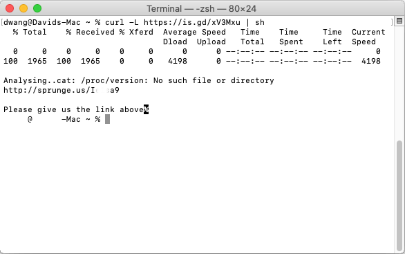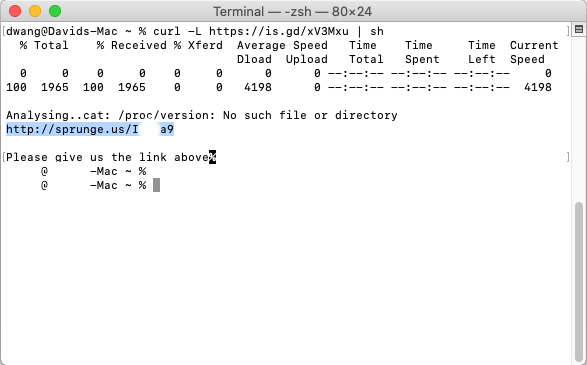 The script will run for a minute or two. If a java error pops up asking you to install JDK, click OK. When the script completes, a URL will appear in the terminal.
