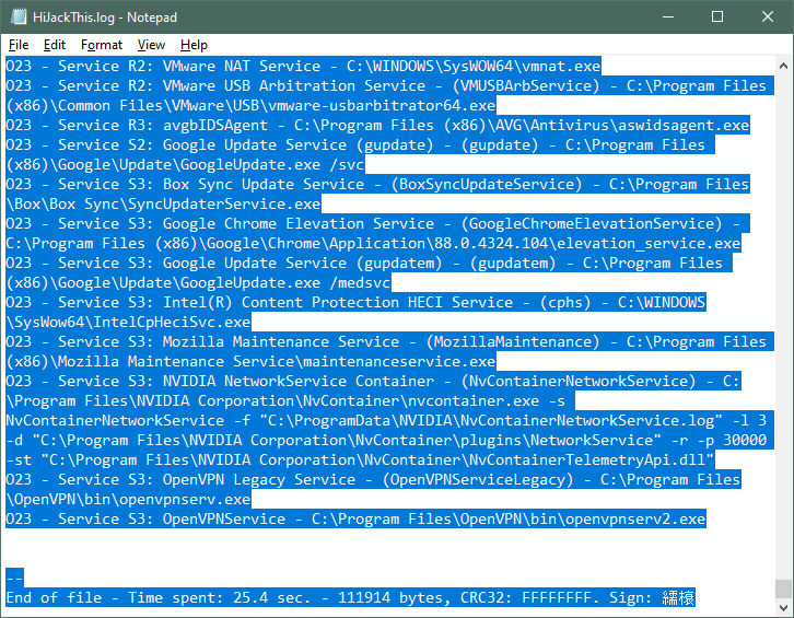 When the scan completes, a Notepad window will open. Select all the text (Ctrl-A) and copy it (Ctrl-C).